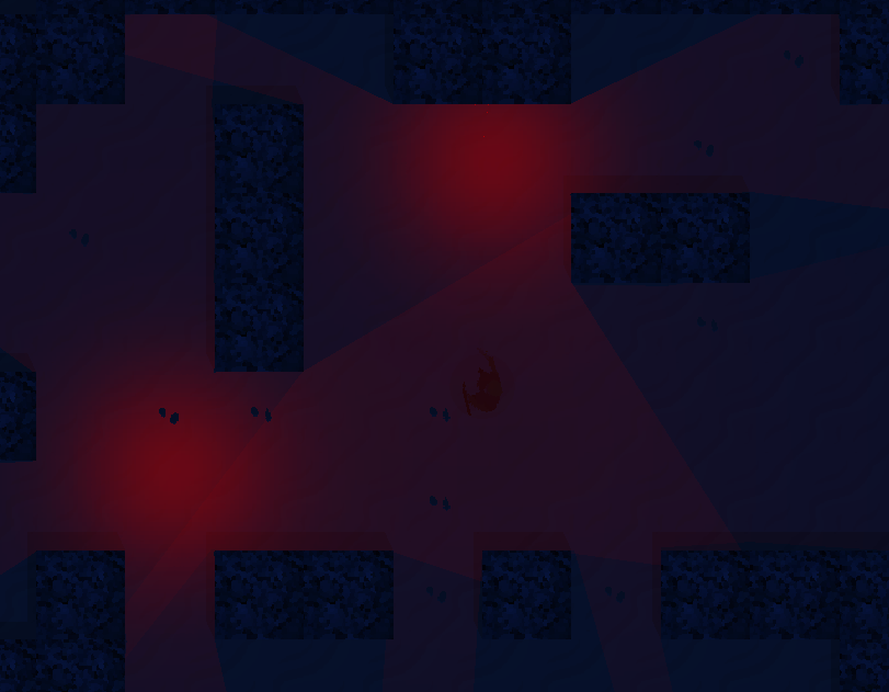 Per frame the light searches for occluding geometry within a given radius. Because Gladius uses a tile system, this is relatively easy and the occluding shapes are simple quads. However this technique can easily be extended to pick up any sort of geometry of any sort of shape (in 2D obviously).